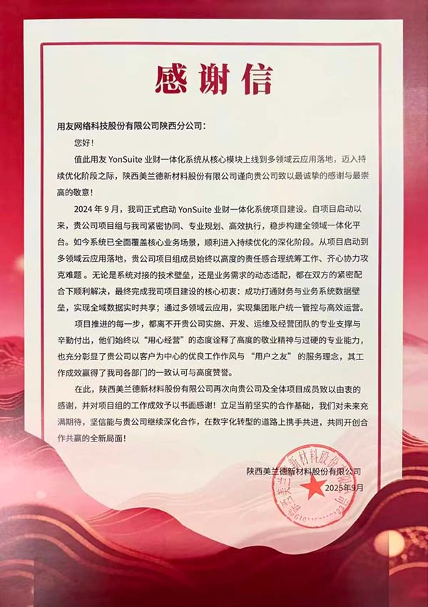 在陜西這片千年秦韻與現(xiàn)代科創(chuàng)交相輝映的熱土上,制造業(yè)的數(shù)智化轉(zhuǎn)型浪潮奔涌向前。陜西美蘭德新材料股份有限公司,作為國(guó)內(nèi)炭/炭復(fù)合材料領(lǐng)域的領(lǐng)軍企業(yè),在與用友網(wǎng)絡(luò)科技股份有限公司陜西分公司的長(zhǎng)期合作中,始終以深度信任為基礎(chǔ),堅(jiān)持“整體規(guī)劃、分步實(shí)施”策略,穩(wěn)步推進(jìn)數(shù)智化轉(zhuǎn)型。雙方以用友YonSuite全鏈路云服務(wù)為支撐,攜手打造一體化數(shù)智平臺(tái),實(shí)現(xiàn)了業(yè)財(cái)深度融合與高效協(xié)同管理,為陜西制造業(yè)的轉(zhuǎn)型升級(jí)提供了可借鑒的實(shí)踐路徑。