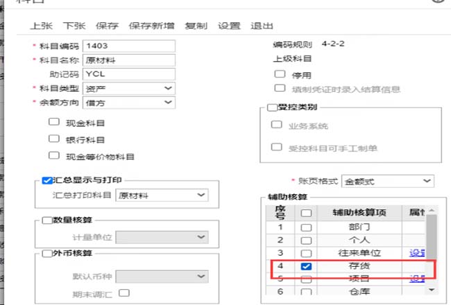 基礎(chǔ)設(shè)置--科目--勾選輔助核算--存貨。