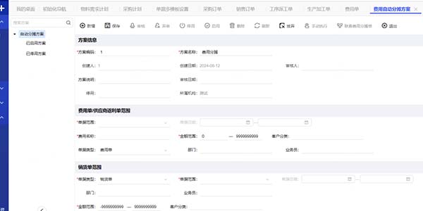1、在經(jīng)營(yíng)分析-多維經(jīng)營(yíng)分析里面設(shè)置費(fèi)用自動(dòng)分?jǐn)偡桨?,可以用于設(shè)置費(fèi)用單/供應(yīng)商返利單(啟用費(fèi)用管理模塊)分?jǐn)偟搅①~單據(jù)(銷貨單、銷售發(fā)票)的規(guī)則,支持自動(dòng)/手動(dòng)完成分?jǐn)偂?/strong>