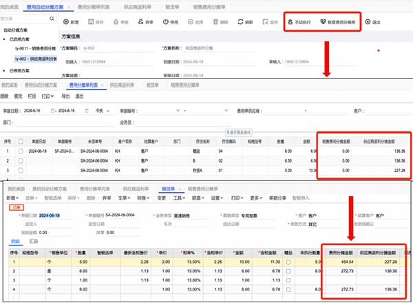 2.費(fèi)用自動(dòng)分?jǐn)?設(shè)置分?jǐn)偡桨?供應(yīng)商返利即廠商費(fèi)用),設(shè)置完后就可以達(dá)到自動(dòng)分?jǐn)偟男Ч?/span>